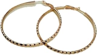 A golden hoop earring for women and girls, large size 7 cm in diameter, made of stainless steel.