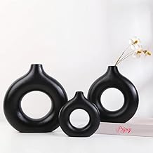 PriPey Donut Vase, Set of 3 Hollow Ceramic Vase for Pampas Grass, Minimalist Nordic Style Boho vase for Wedding, Dinner, Table, Party, Living Room, Office, Bedroom, and Decorative Gift (Black)