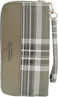 Faux Leather Large Bifold Squares Design Wallet Contains Zipper Pocket With Divided Interior Business Card Pockets And Includes Hand Strap For Women - Multi Color