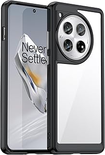 BOKYAS Cover for OnePlus 12 5G - Crystal Clear Silicone Case, Anti-Yellowing Case with Shockproof, Anti-Scratch and Hard Back in PC, Black