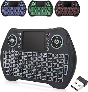 EASYTONE Backlit Mini Wireless Keyboard with Touchpad Mouse Combo Remote Control with Rechargeable Li-ion Battery and Multimedia Keys for Android TV Box HTPC PS3 Smart TV PC X-Box Linux Windows MacOS