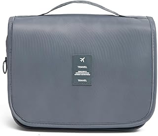 SKY-TOUCH Travel Hanging Toiletry Wash Bag Waterproof Cosmetic Case Makeup Organiser Organizer Toiletry Storage Box with Adjustable Compartments for for Women Girls Kids (Grey)