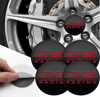 3D Car Wheel Hub Hub Cover Kit - 4 Pieces 56mm Paste - Compatible with OZ Black Red Writing
