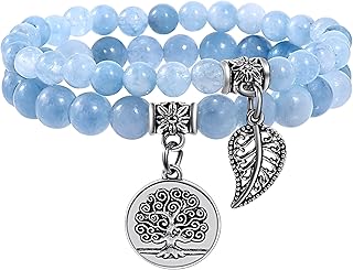 Farfume Chakra Bracelets for Women - Crystals Bracelet Women Natural Gemstones Yoga Reiki Bangle- A Set of Double Bracelets(Blue Aquamarine & LifeTree(Medium)