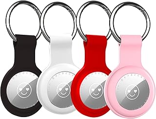 GENREEN AirTag Silicone Holder with Keychain,Anti-lost AirTag Case for Apple Airtag Case, Keyring for Air Tag Cover Dog Collar Loop Accessories(Black/Red/Pink/White)