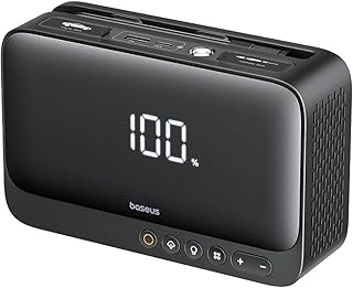 Baseus New 4in1 Jump Starter Tire Inflator Portable Air Compressor Powerbank 6000mAh Electric Cordless 150PSI Handheld Rechargeable Pressure Gauge Wireless Smart Display for Car/Bike/Bicycles/Balls