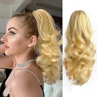 Ponytail Hair Extensions,58cm to 65cm - Claw Clip Ponytails Extension for Women Curly Hair Piece Synthetic Pony Tail Wig Wavy Fluffy Hairpiece Daily Use150 gm -jw294-15A BLOND