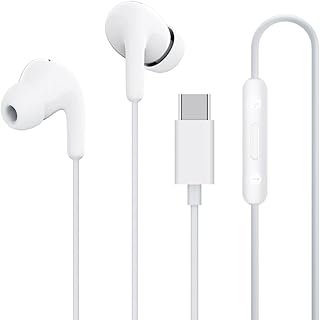 Xiaomi Type-C In-Ear Earphones – 12.4mm Dynamic Drivers, Built-in HD Microphone, IP54 Dust & Water Resistant, Ergonomic Design, USB-C Wired Earbuds for Android Devices – White
