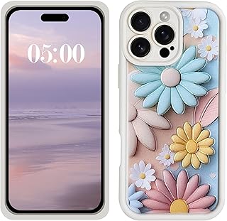 Silicon TPU Case Camera Protection with 3D Cheerful Prints For Apple iPhone 16 Pro 6.1 Inch (Colorful Flowers)