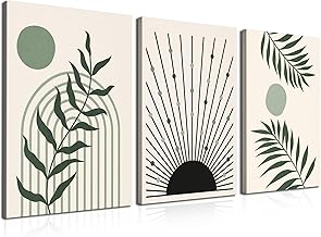 Boho Wall Art Set of 3 Canvas Wood Framed Botanical and Minimalist Pictures, Waterproof | Anti-fade | Lightweight | Sturdy | Easy to Hang Wall Decor for Bedroom, Living Room, Dining Room, Bathroom,