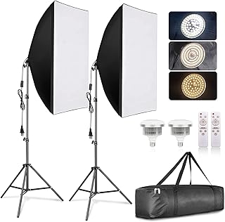SKADE Softbox Lighting Kit, Studio Lights LED Photography Lighting Equipment with Remote Dimming 6000K Bulbs for Photography, Vlogging, Podcast, Video, Live Stream, Film etc (2 pcs)