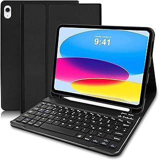 iPad 10 Generation Keyboard Case, iPad Keyboard Case for iPad 10 Generation 2022 10.9 Inch, Slim Protective Case with Pencil Holder Wireless Removable QWERTZ Keyboard for iPad 2022 10th Gen - Black