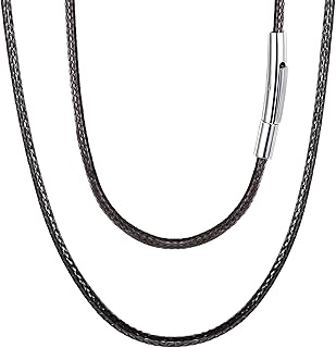 FOCALOOK Mens Leather Necklaces 2/3mm Braided Artificial Leather Cord Chain Necklace with Stainless Steel Clasp, 18", 20", 22",24",26",28",30" Black/Brown Chains
