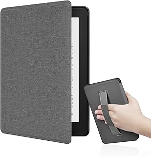 J.M.SHOW Case for 6.8" Kindle Paperwhite(11th Generation-2021) and Kindle Paperwhite Signature Edition with Hand Strap - Durable PU Leather Cover Case with Auto Sleep Wake, Gray