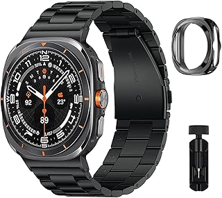 Newentor No Gaps Bands Compatible with Samsung Galaxy Watch 7 Ultra 47mm 2024 Stainless Steel Metal Replacement Strap Women Men Black