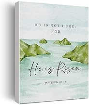 Xiolcxdr Bible Verse Watercolor Canvas Print Decor He is Not Here For He is Risen Wall Painting Modern Home Office Posters Artwork Decoration 12”X15” (Framed)