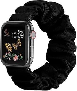 Mobilic Compatible for Scrunchie Watch Band 42mm 44mm Cute Print Elastic Watch Bands Women Bracelet Strap for iWatch Series 6 5 4 3 2 1 Color Black