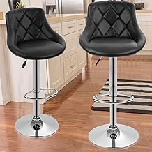 Dkeli Counter Height Bar Stools Set of 2 Leather Adjustable Bar Chairs for Kitchen Living Room Pub Swivel Bar Stool Armrest(Black)